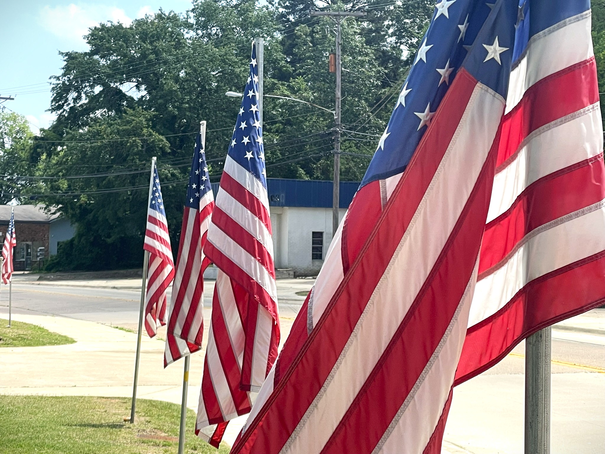 “We’ll have a workday every now and then when we’ll pull flags off the poles and put brand new ones on,” Camp added, entrusting old flags to the Boy Scout Troop 252 for respectful retirement. The crisp red, white and blue of a new flag’s always a nice sight: “We don’t need much reminding, but it still highlights the holidays themselves.”