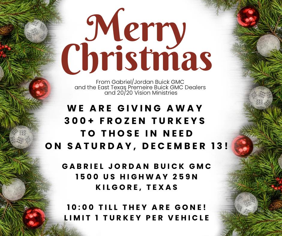 The dealership’s Tim Capps credits 20/20 Vision’s Jody Clements for spearheading the turkey drive alongside Gabriel/Jordan Buick GMC and East Texas Premiere Buick GMC Dealers.